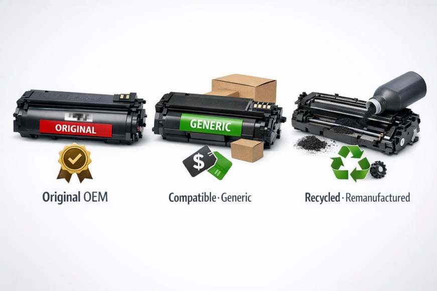 - 3 tipos por origen (original, compatible, reciclado/remanufacturado)